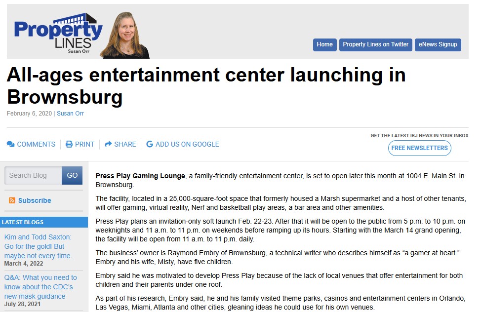Press Play Gaming Lounge Featured in Discover Brownsburg 2026 We’re honored to share that Press Play Gaming Lounge has been featured in the 2026 edition of Discover Brownsburg, the official Town of Brownsburg magazine. Article [...]